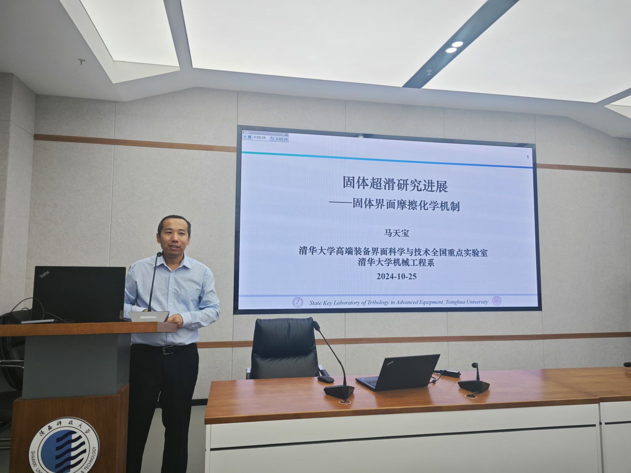 10月25日,應(yīng)我??萍继帯⑶把卦汉蜋C(jī)電工程學(xué)院(智能制造與機(jī)器人工程學(xué)院)邀請,清華大學(xué)高端裝備界面科學(xué)與技術(shù)全國重點(diǎn)實(shí)驗(yàn)室馬天寶教授做客我校“前沿科學(xué)報(bào)告”,為我校師生帶來主題為“固體超滑研究進(jìn)展—固體界面摩擦化學(xué)機(jī)制”的學(xué)術(shù)報(bào)告,本次報(bào)告會由機(jī)電工程學(xué)院賈均紅教授主持,相關(guān)專業(yè)教師及研究生參加了此次報(bào)告會。