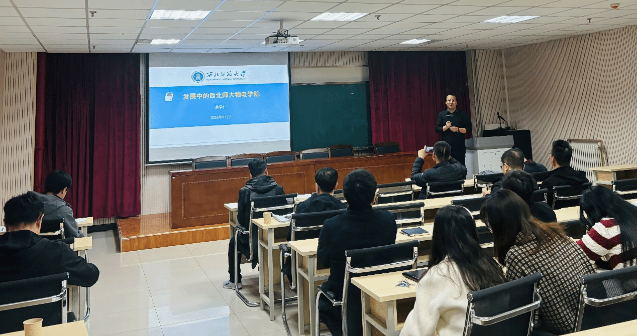 2024年11月19日上午,西北師范大學(xué)物理與電子工程學(xué)院副院長(zhǎng)洪學(xué)仁、王濤及豆福全教授受邀出席我校“未央導(dǎo)師論壇”。在理科樓440會(huì)議室做了精彩的學(xué)術(shù)報(bào)告。報(bào)告會(huì)由物理與信息科學(xué)學(xué)院院長(zhǎng)劉建科主持,物理學(xué)科相關(guān)碩士研究生、導(dǎo)師參加了此次報(bào)告會(huì)。