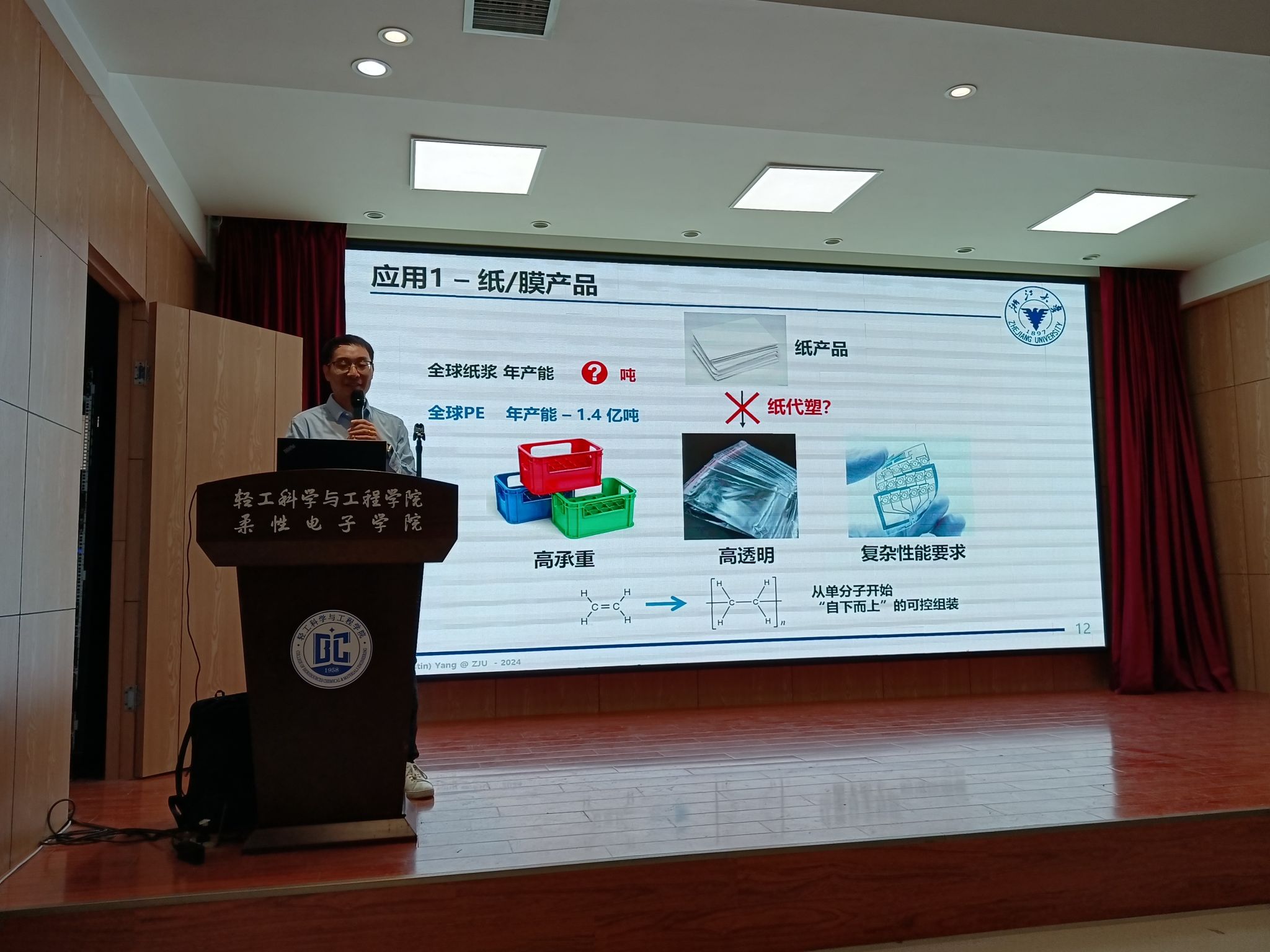 會上,楊軒研究員就自己課題組針對植物的微納多級結(jié)構(gòu)和化學組分進行系統(tǒng)分析,巧妙設(shè)計不同的分離方法,得到性能優(yōu)異的納米纖維素,之后再通過調(diào)控其組裝過程,制備具有特殊結(jié)構(gòu)與性能的新一代紙和纖維產(chǎn)品,并探索其高值化利用等進行了詳細介紹。此外,楊軒研究員就結(jié)晶高分子/膠體納米顆粒-界面問題的基礎(chǔ)研究進行了未來展望,探討了環(huán)保高性能纖維素納米材料的生產(chǎn)、“紙代塑”和“棉代塑”等高性能多功能材料開發(fā)的可行性。