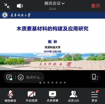 12月26日,應輕工科學與工程學院(柔性電子學院)和科技處、前沿院邀請,天津科技大學戴林教授做客我?!扒把乜茖W報告”,并作了題為“木質素基材料的構建及應用研究”的線上學術報告。本次前沿科學報告由輕工學院黨旭崗副教授主持,學院相關教師和全體研究生參加了本次報告會。